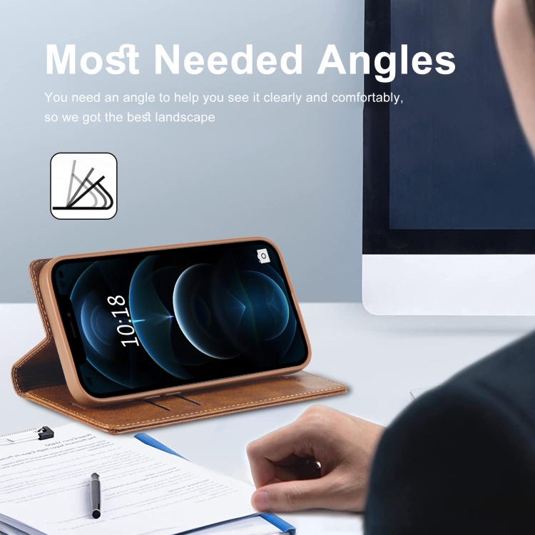 Funda para iPhone 12 Pro Max Lc.Imeeke Rfid Cuero Antirrobo (Marrón)