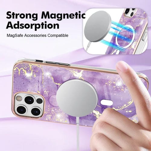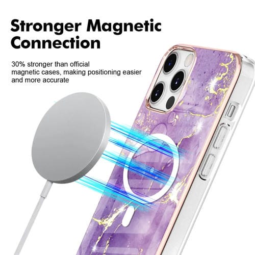 For iPhone 12 Pro Max Marble Pattern Dual-side IMD Magsafe TPU Phone Case (Purple 002)