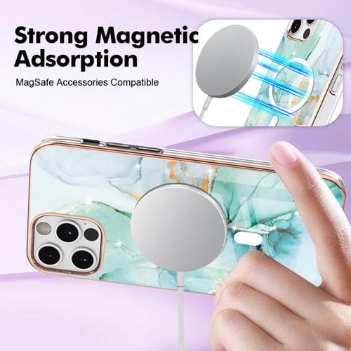 For iPhone 12 Pro Max Marble Pattern Dual-side IMD Magsafe TPU Phone Case (Green 003)