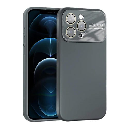 Película de Lente Acrílica + Funda Silicona Líquida para iPhone 12 Pro Max Cobertura Total (Gris)