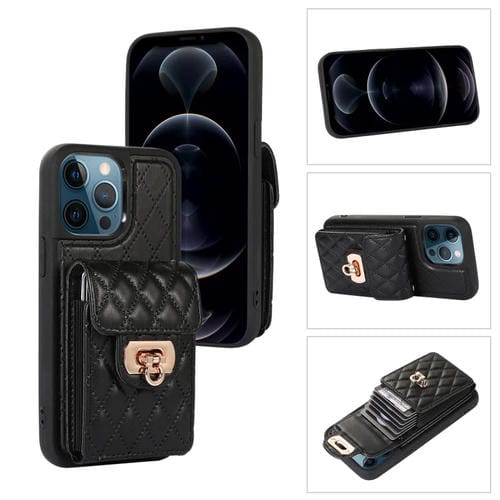 Funda de Cuero para Teléfono iPhone 12 Pro Max Ranura para Tarjeta (Negro)