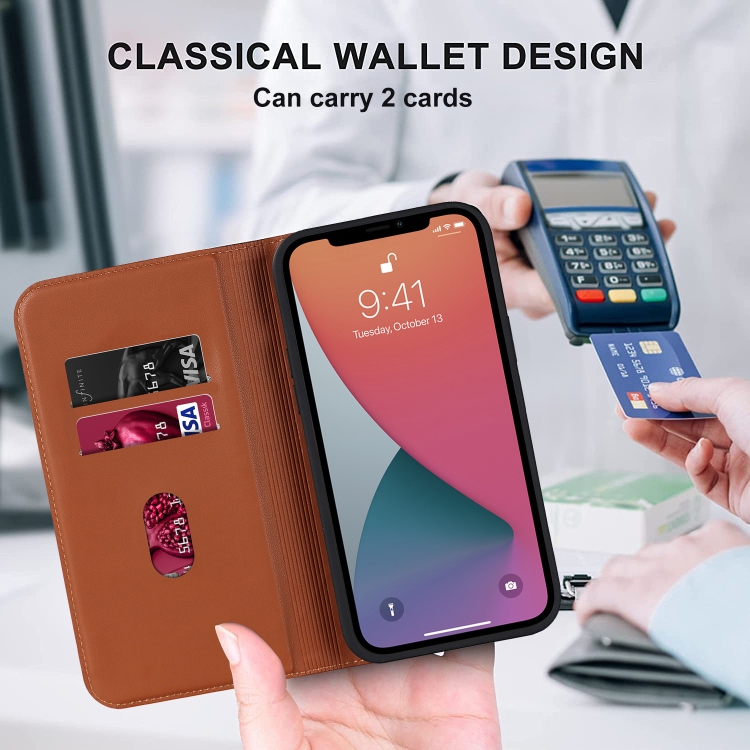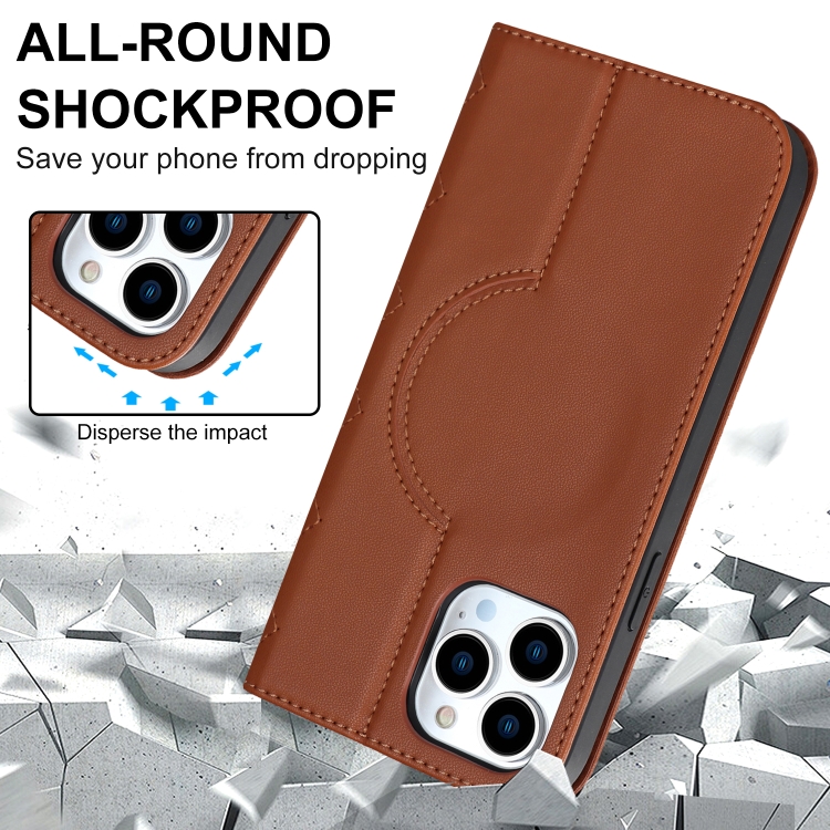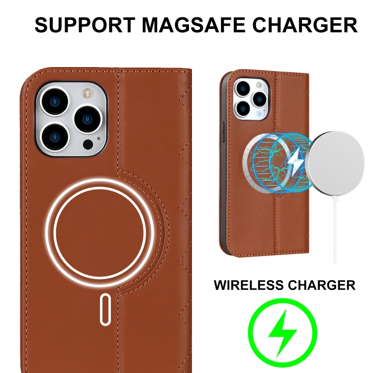 Funda para iPhone 12 Pro Max Rhombic Magsafe Rfid Antirrobo de Cuero con Billetera (Marrón)