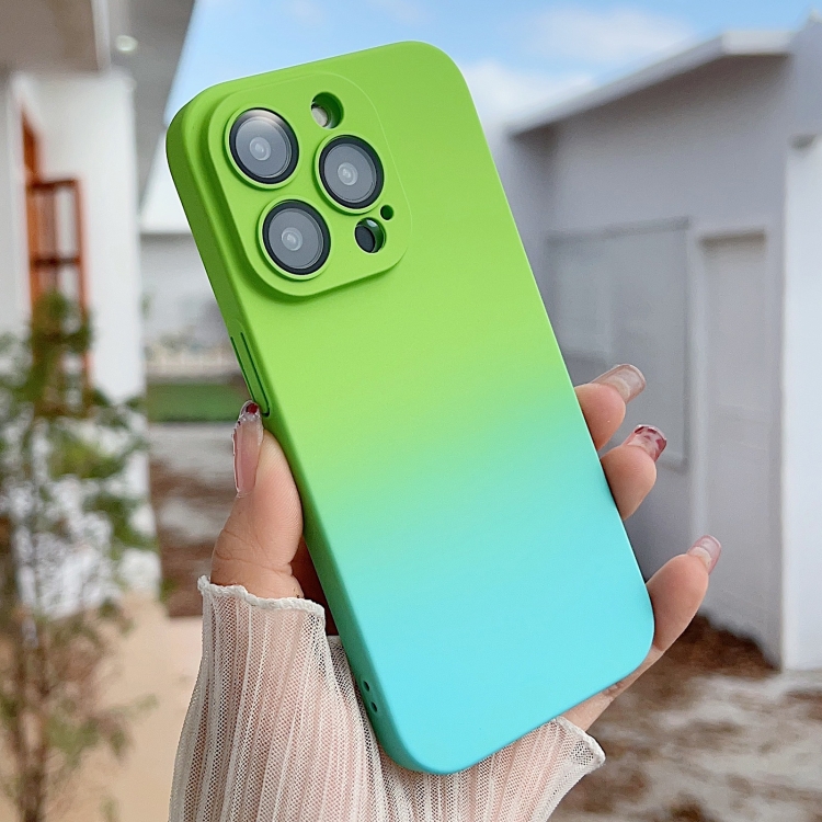 Funda para iPhone 12 Pro Max Skin Feel Gradient Phone Case (Verde + Azul)