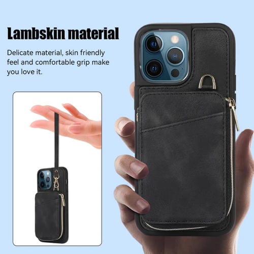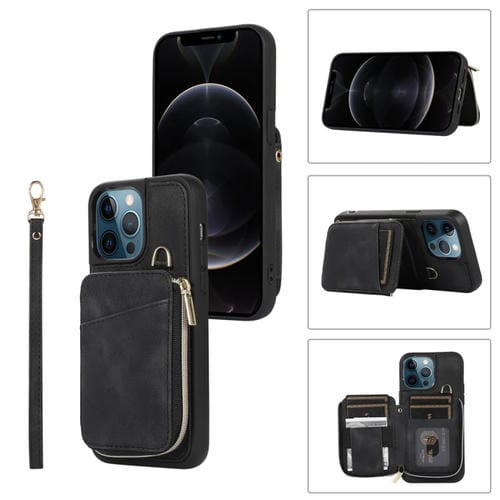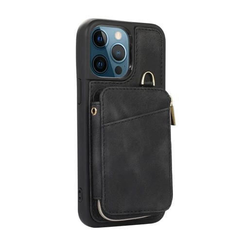 Funda para Teléfono iPhone 12 Pro Max Zipper Card Bag Contraportada (Negro)