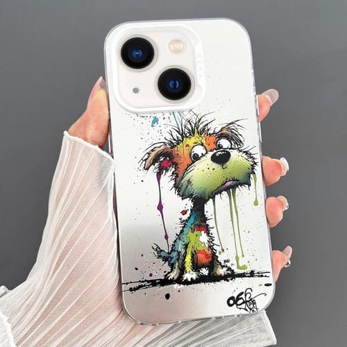 Funda para Teléfono iPhone 13 Imd Animal Graffiti TPU + PC Doble Cara (Perro Naranja Verde)