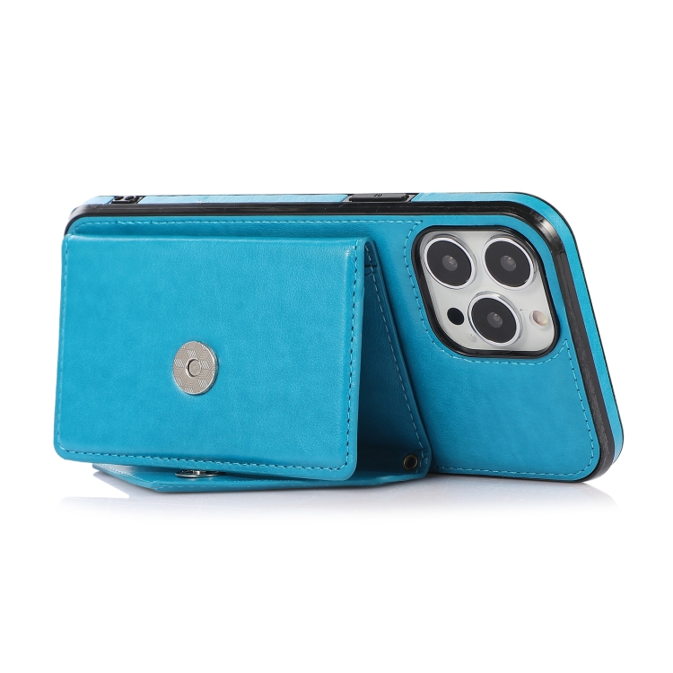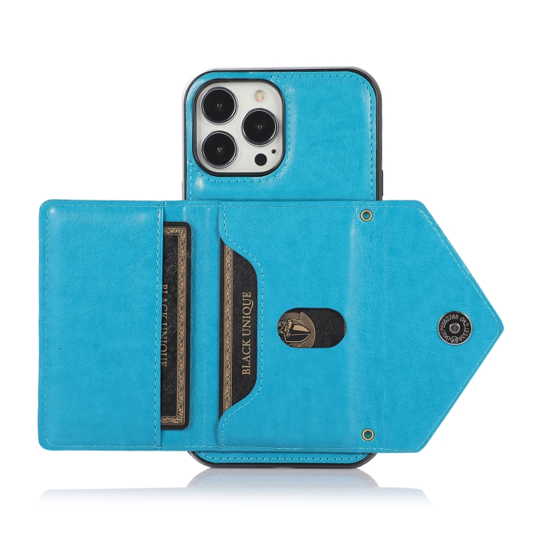 Funda Trasera para iPhone 13 Pro TPU y PU Bolsa de Tarjeta Multifuncional con Soporte y Ranura para Tarjeta (Azul)