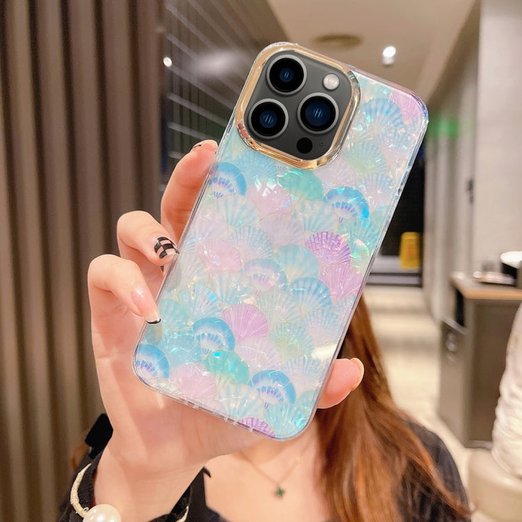 Funda para iPhone 13 Pro Colorful Crystal Shell Pattern PC + TPU Phone Case (Scallop Blue)