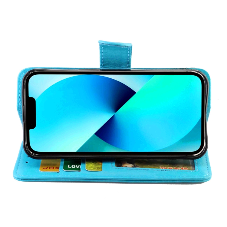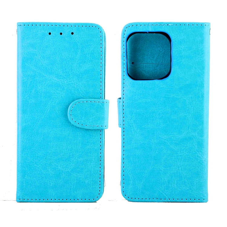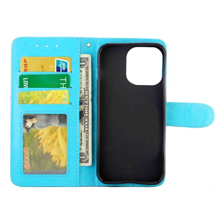 Funda Protectora de Cuero Crazy Horse para iPhone 13 Pro con Tapa Horizontal, Soporte, Ranuras para Tarjetas, Billetera y Marco de Fotos (Bebé Azul)