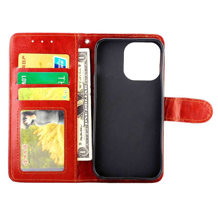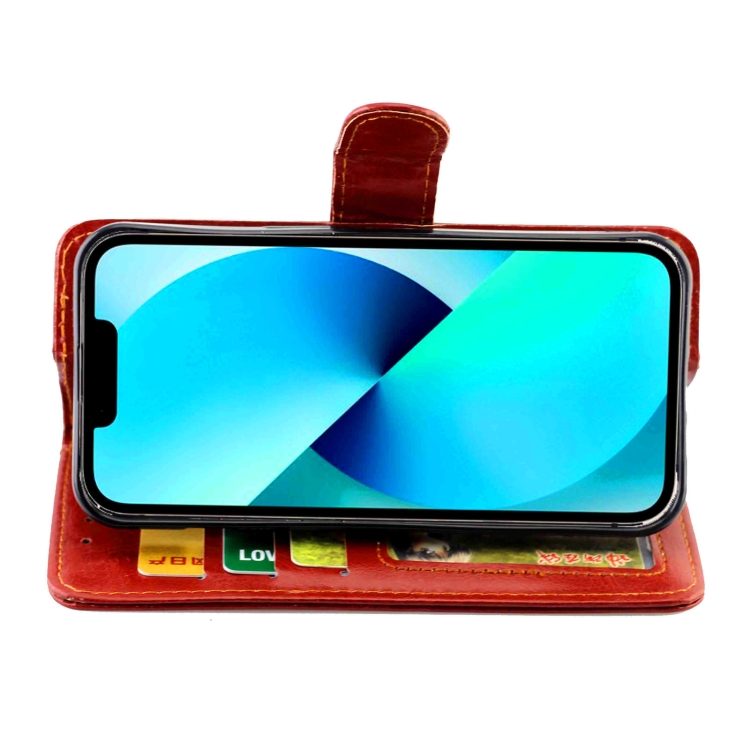 Funda Protectora para iPhone 13 Pro Crazy Horse Texture Cuero con Tapa Horizontal Soporte Ranuras Tarjetas Billetera Marco de Fotos (Marrón)