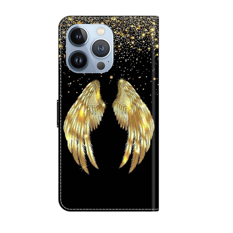 Funda Protectora de Cuero iPhone 13 Pro Crystal 3D a Prueba de Golpes (Alas Doradas)