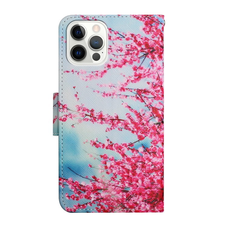 Estuche de Cuero para iPhone 13 Pro con Tapa Horizontal, Soporte, Ranura para Tarjeta y Billetera (Flores de Cerezo Rojas)