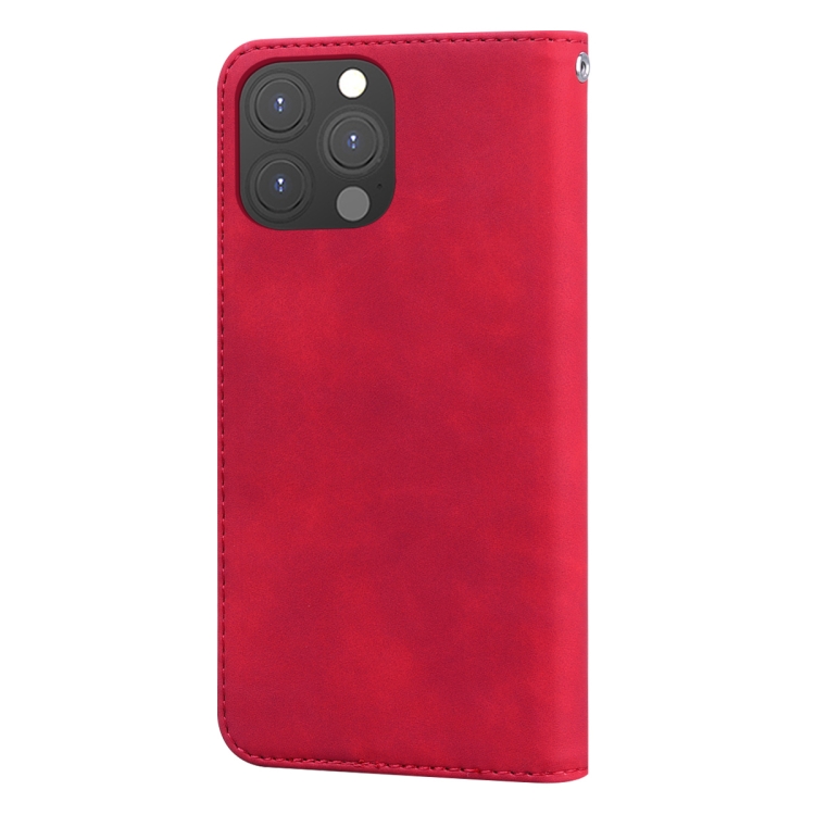 Estuche para iPhone 13 Pro Cuero de PU con Tapa Horizontal Magnética Soporte Ranura para Tarjeta y Cordón (Rojo)