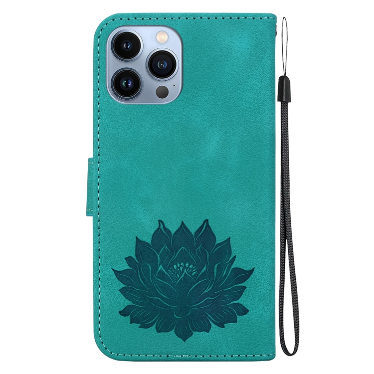 Funda para iPhone 13 Pro Cuero con Relieve de Loto (Verde)