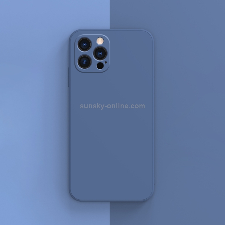 Funda para iPhone 13 Pro Franela con Forro de Silicona Líquida de Borde Recto (Azul)