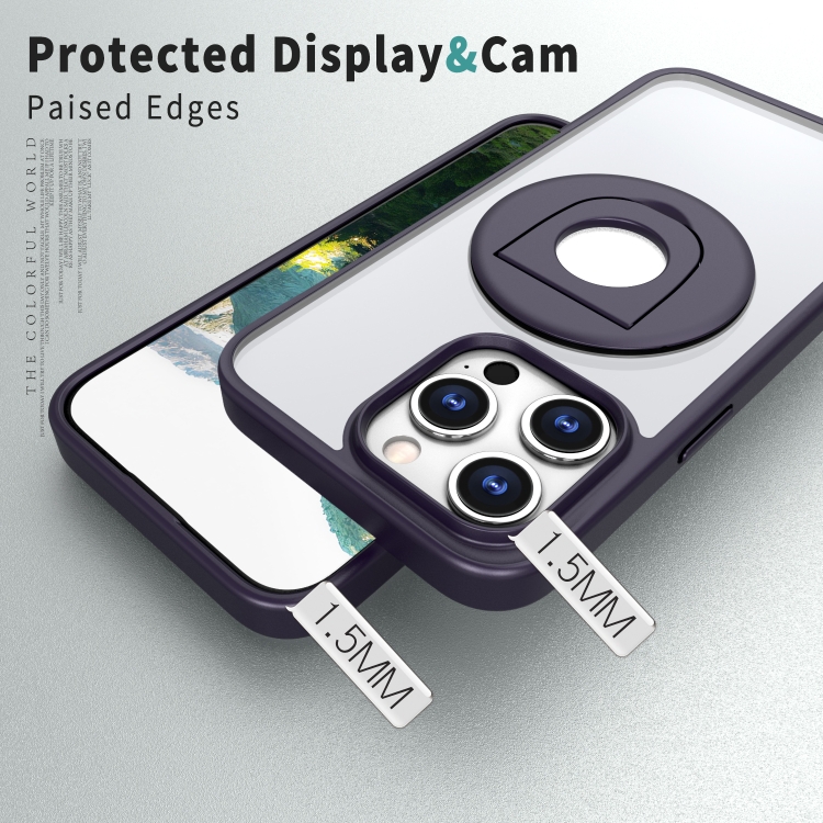 Funda Magnética Magsafe para iPhone 13 Pro Max y 12 Pro Max con Soporte Anillo en U (Transparente Púrpura)