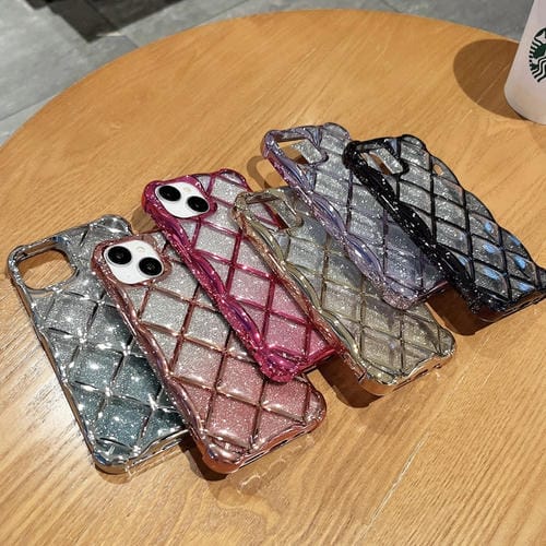 Funda para iPhone 13 Pro Max 3D Diamond Lattice Laser Engraving Glitter Paper (Gradient Pink)