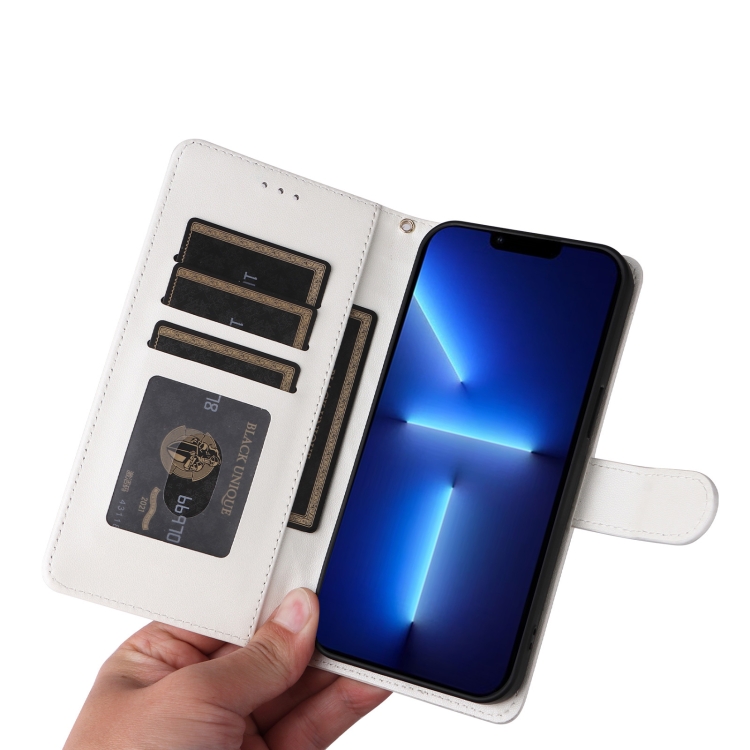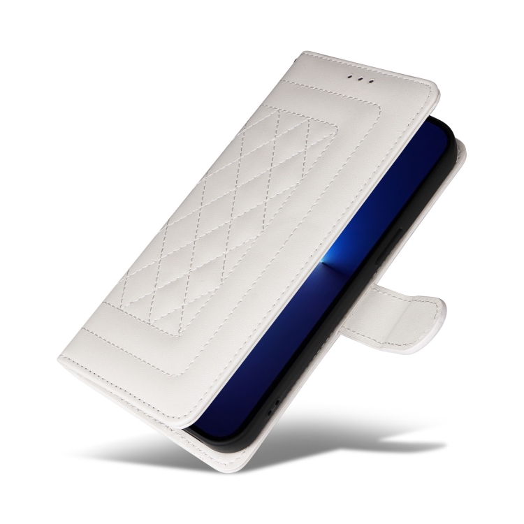 Funda para iPhone 13 Pro Max Diamond Lattice de Cuero con Tapa (Blanco)