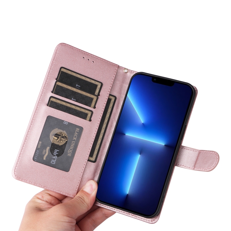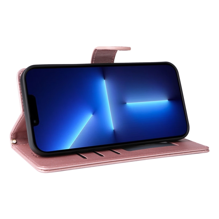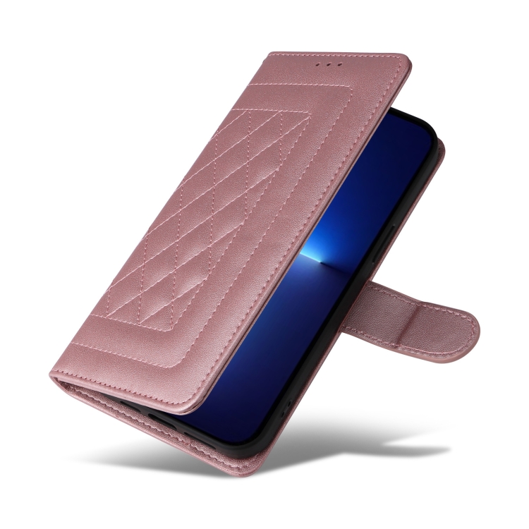 For iPhone 13 Pro Max Diamond Lattice Leather Flip Phone Case (Rose Gold)