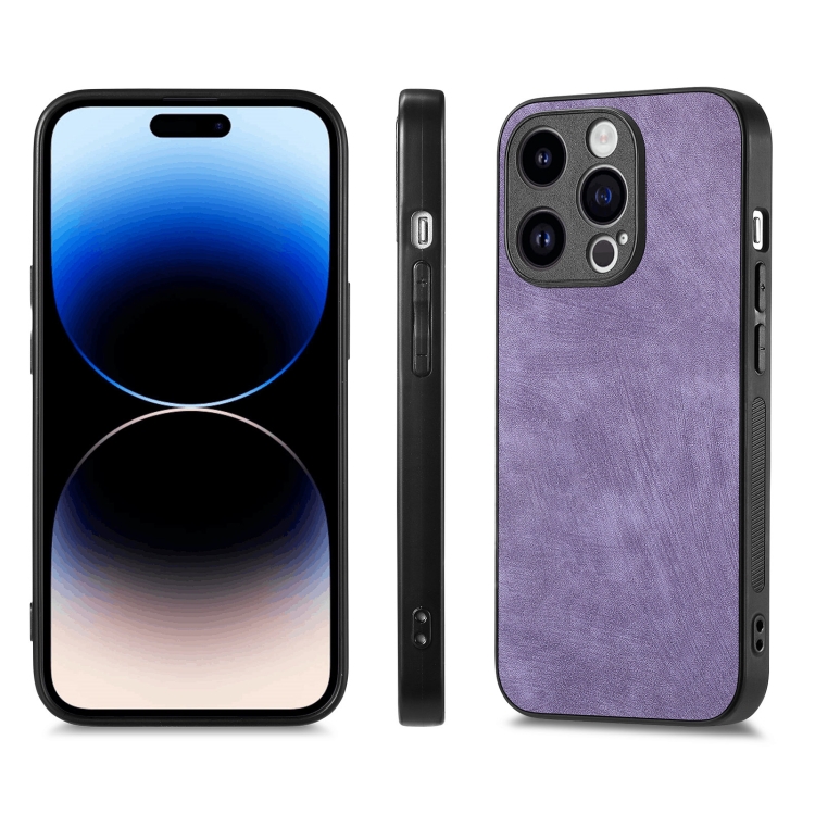 Funda de Teléfono iPhone 13 Pro Max Contraportada Cuero Vintage PC (Púrpura)