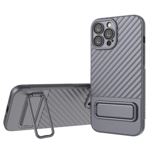Funda de Teléfono TPU para iPhone 13 Pro Max con Textura Ondulada y Película de Lente (Gris)