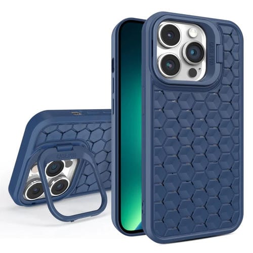 Funda Magnética para Teléfono iPhone 13 Pro Max Honeycomb Radiating Lens Holder (Azul)
