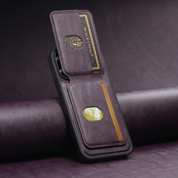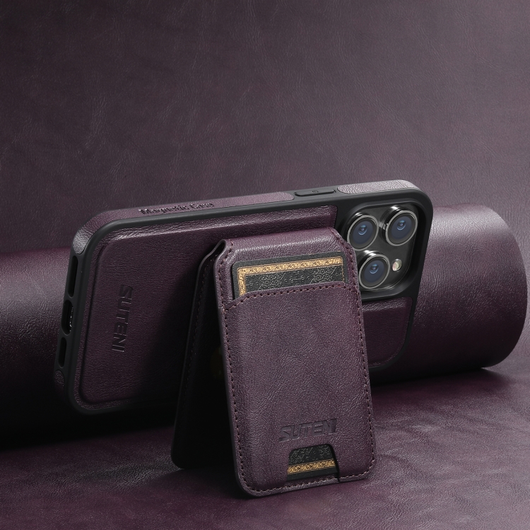 Funda para teléfono Suteni M1 Oil Wax Magsafe para iPhone 13 Pro Max con bolsa para tarjeta horizontal (Púrpura)