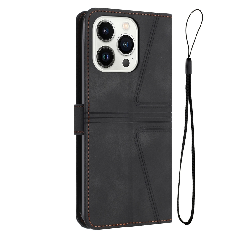 Funda para teléfono iPhone 13 Pro Max Triangle de cuero Color Sólido (Negro)