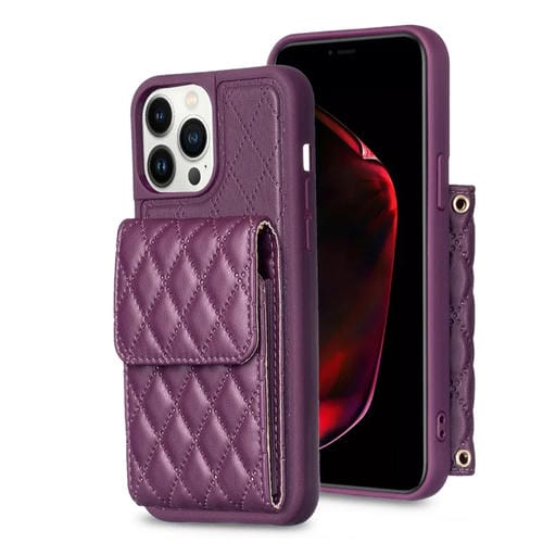 Funda de Cuero Vertical Wallet para iPhone 13 Pro Max Rhombic (Púrpura Oscuro)