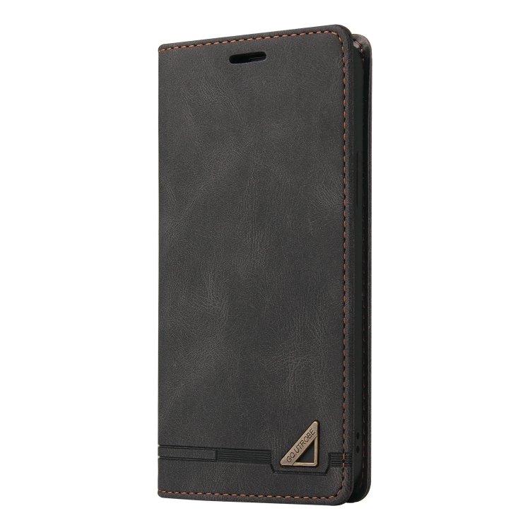 Funda de Cuero para iPhone 13 Pro Skin Feel con Tapa Horizontal, Cepillo Antirrobo, Soporte, Ranuras para Tarjetas y Billetera (Negro)