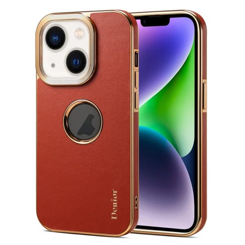 For iPhone 14/13 Denior Fragrant Calf Texture Electroplating Phone Case (Garnet Red)