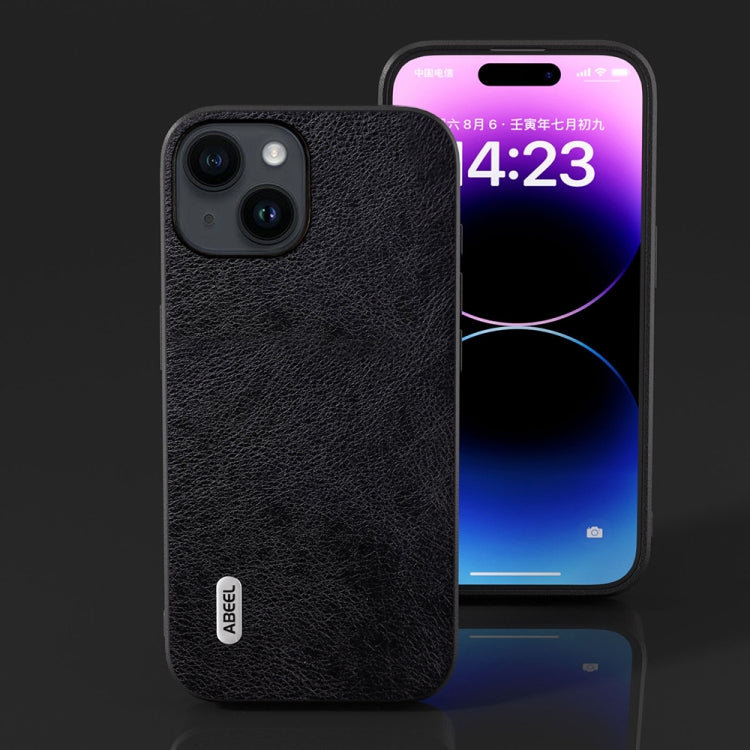 Funda para iPhone 14 Abeel Dual Color Lichi Texture PU Phone Case (Negro)