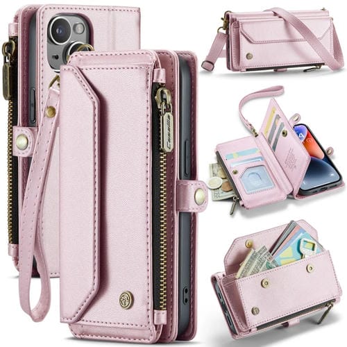 Funda para iPhone 14 Caseme C36 Cartera con Ranuras para Tarjetas y Cremallera Antirrobo Rfid (Rosa)