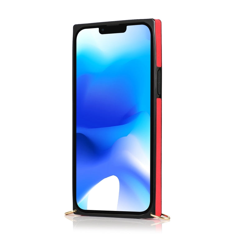 Pour iPhone 14 Étui de téléphone à bandoulière avec dragonne avec porte-carte (rouge)