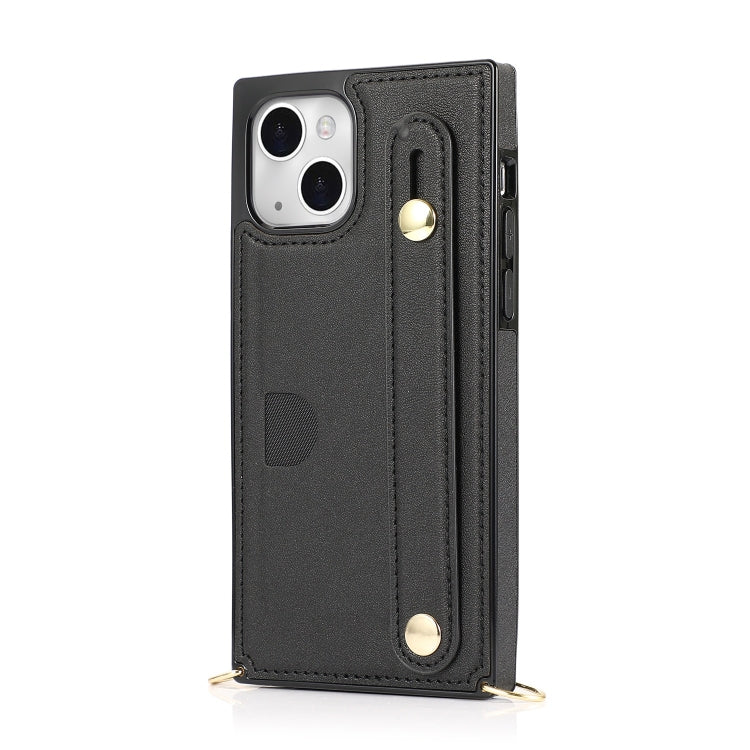 Pour iPhone 14 Étui de téléphone à bandoulière avec dragonne avec porte-carte (noir)