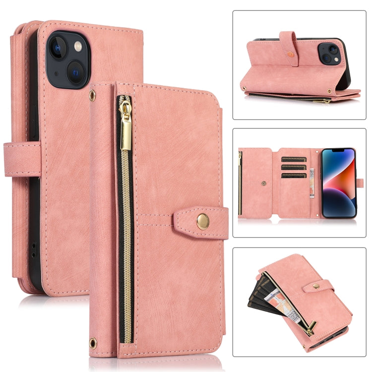 Funda de Cuero para Teléfono iPhone 14 Dream 9-Card Wallet Zipper Bag (Rosa)