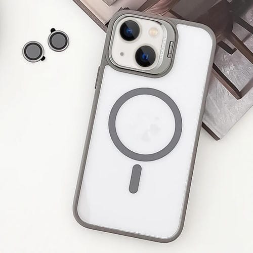 Pour iPhone 14 MagSafe Acrylique Hybrid TPU Kickstand Phone Case avec film d'objectif (gris)