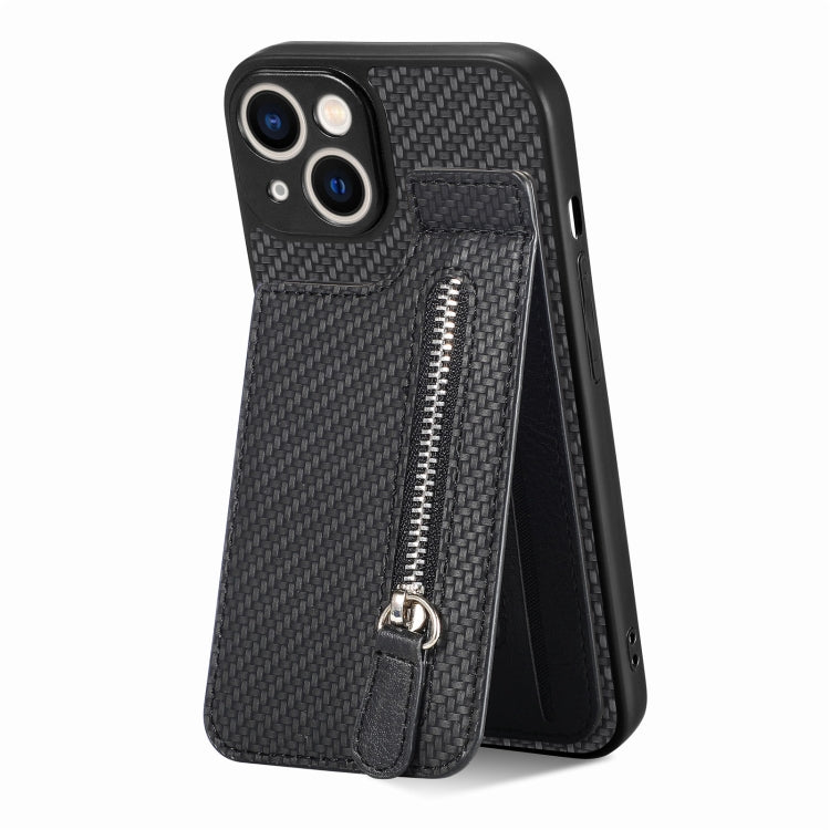 For iPhone 14 Carbon Fiber Vertical Zipper Phone Case (Black)