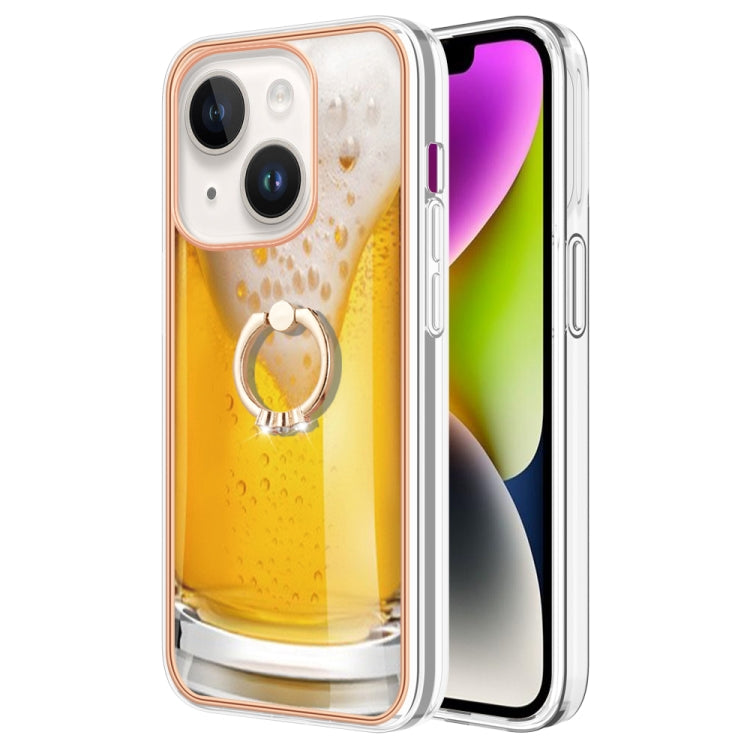 Funda para iPhone 14 Galvanoplastia IMD Doble Cara con Soporte para Anillo (Cerveza de Barril)