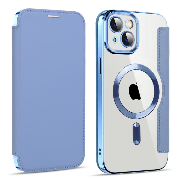For iPhone 14 MagSafe Magnetic RFID Anti-Theft Leather Phone Case (Sierra Blue)