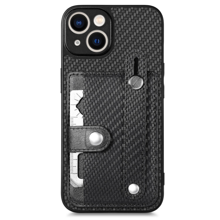 For iPhone 14 Wristband Kickstand Card Wallet Back Cover Phone Case with Knife Tool (Black)