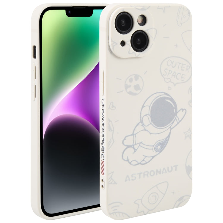 For iPhone 14 Astronaut Pattern Silicone Straight Edge Phone Case (Flying Astronaut-White)