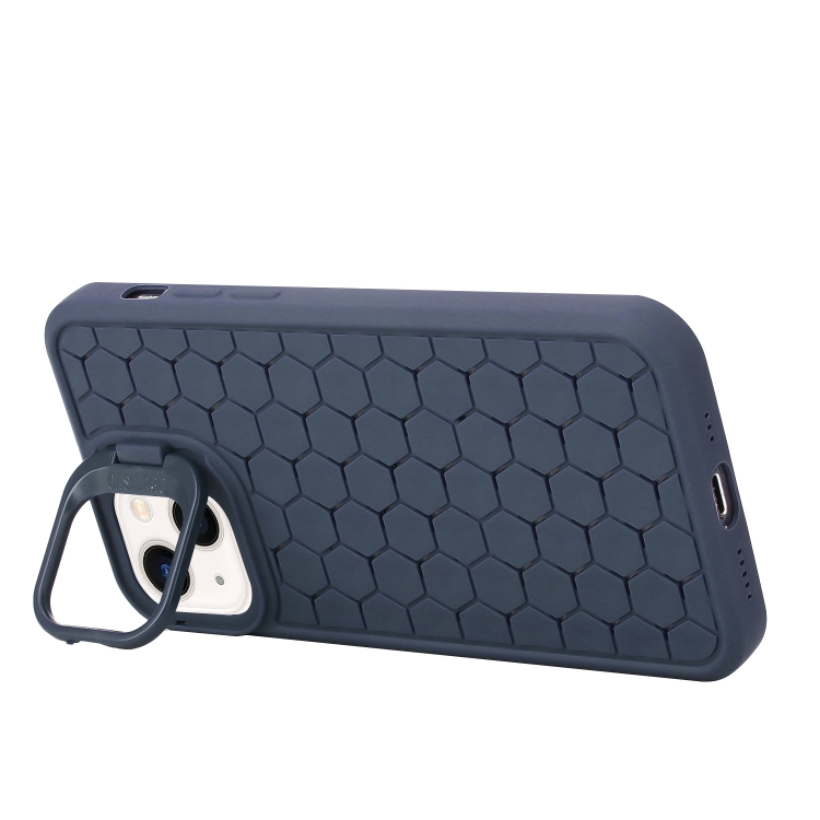 Funda para Teléfono TPU iPhone 14 Plus Soporte Radiante Panal con Cordón (Azul)