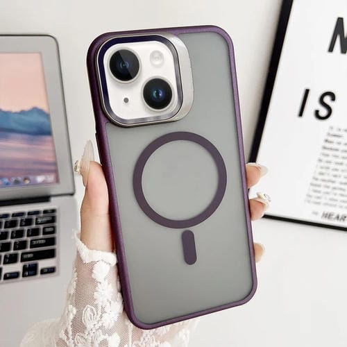 For iPhone 14 Plus J3 Magsafe Frame Bracket Shockproof Phone Case(Dark Purple)