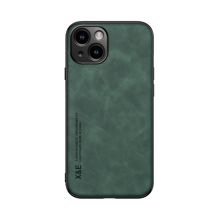 Funda para iPhone 14 Plus Skin Feel Magnetic Leather Back Phone Case (Verde)