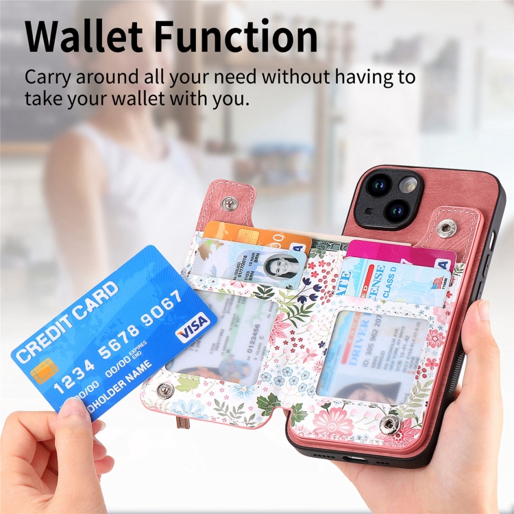 Estuche para Teléfono iPhone 14 Pro Max con Billetera y Cremallera Pintada Retro (Rosa)