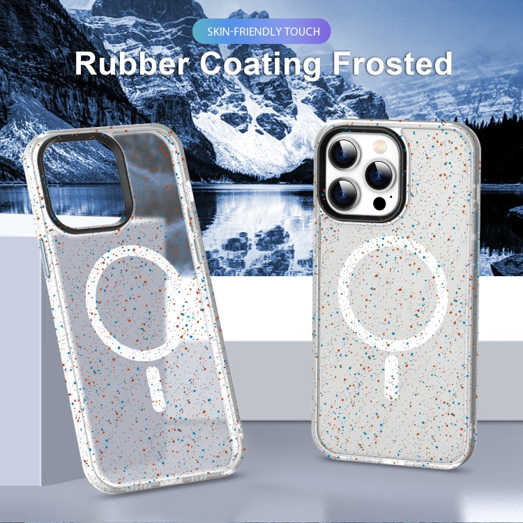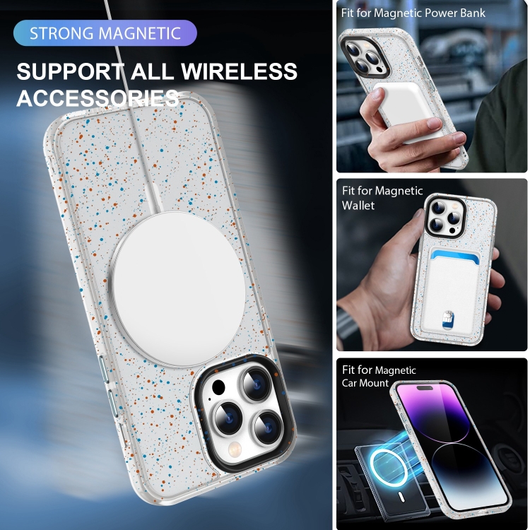 Estuche para Teléfono híbrido TPU Magsafe para iPhone 14 Pro Max con Salpicaduras de Tinta Colorida (Blanco)