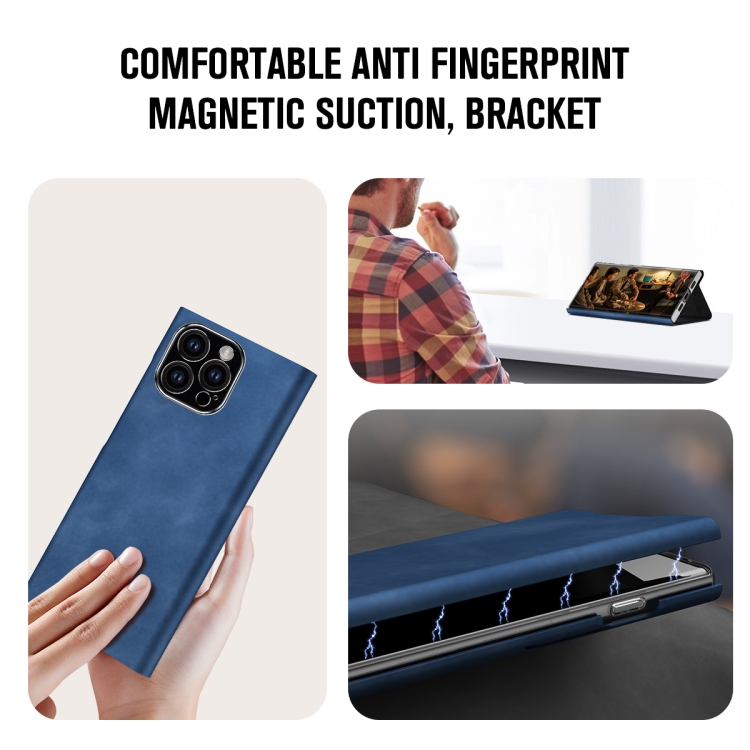 Funda Magnética de Cuero para iPhone 14 Pro Max con Textura de Napa y Soporte (Azul)