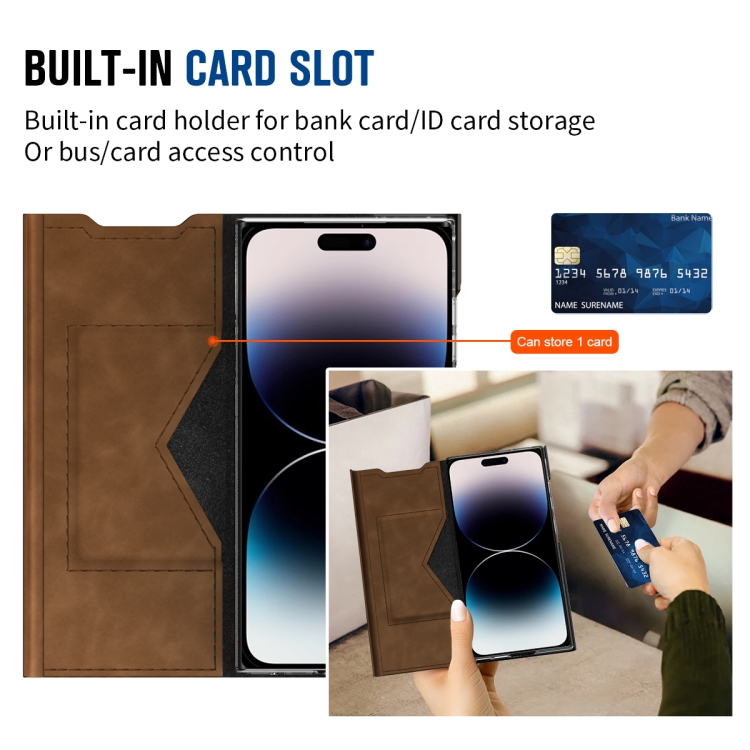 Funda Magnética de Cuero para iPhone 14 Pro Max con Textura de Napa y Soporte (Marrón)