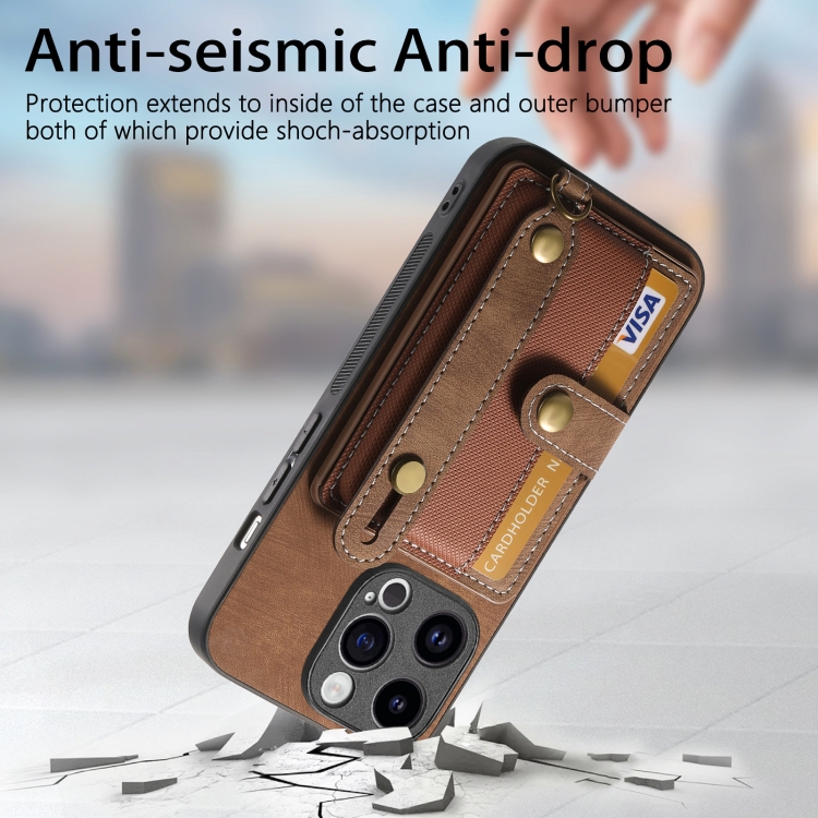 Funda Trasera para iPhone 14 Pro Max Retro Cross Muñequera Monedero de Cuero (Marrón)