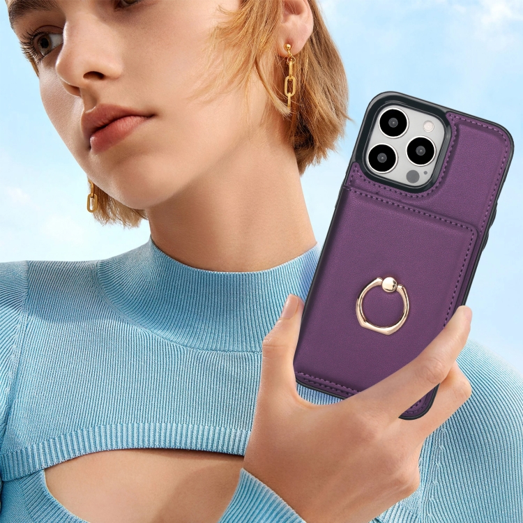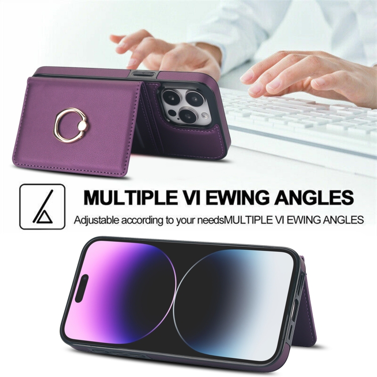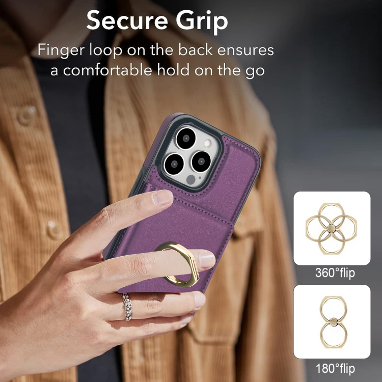 Funda para Teléfono iPhone 14 Pro Max Rfid con Soporte para Anillo y Tarjeta Antirrobo (Púrpura Oscuro)